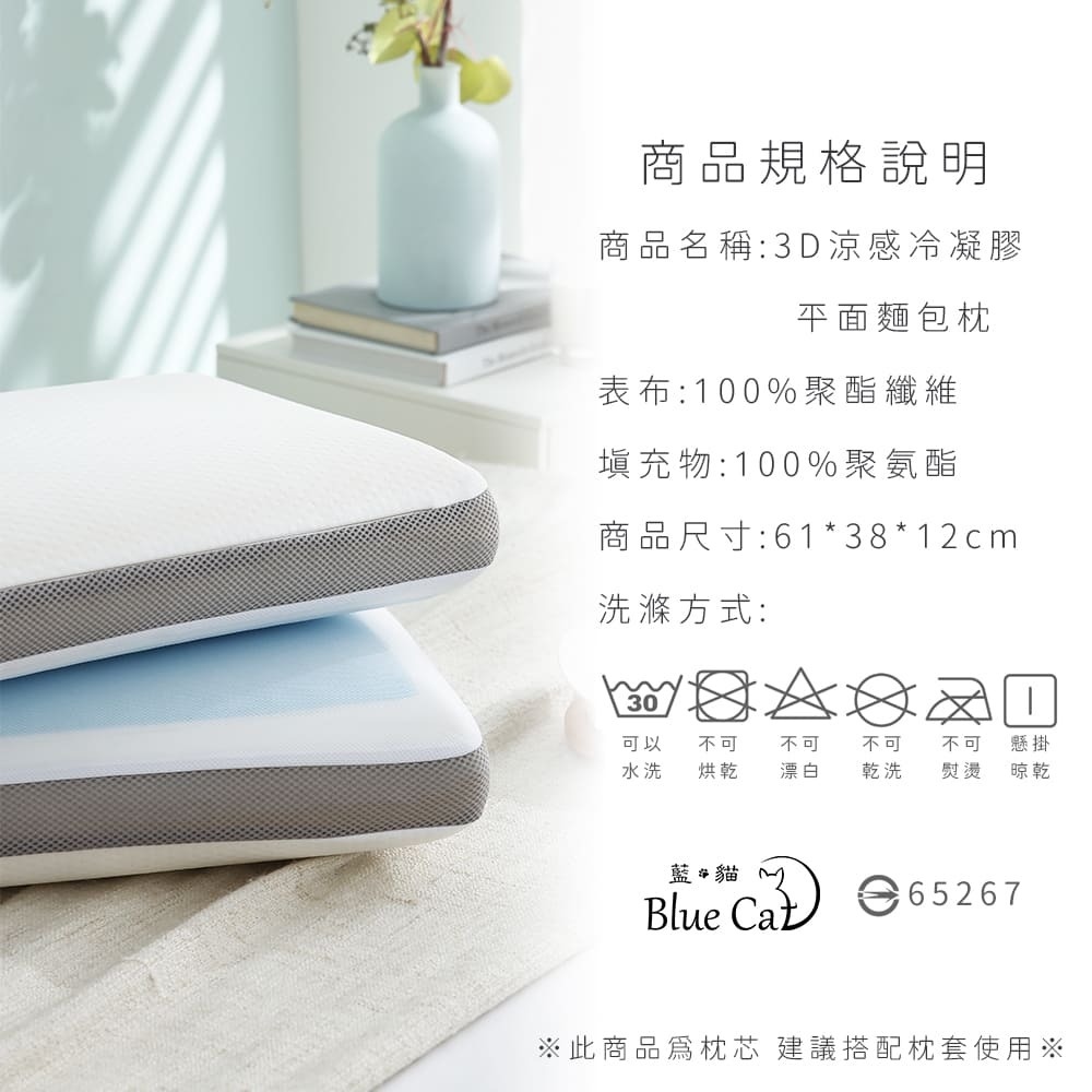 【藍貓Blue cat】3D涼感冷凝膠平面麵包枕