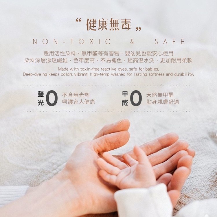可水洗或送洗,放入洗衣袋為佳,與深色商品分開洗即可;不可漂白、乾洗,且不建議烘乾,並定期日曬達到消毒除溼效果。